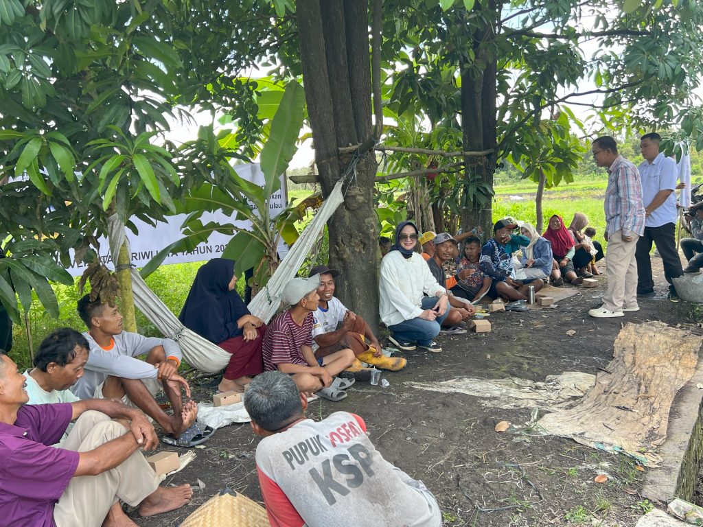 Dalam diskusi yang dilakukan di lahan pertanian, para petani mengungkapkan berbagai masalah yang sering mereka hadapi, seperti serangan ulat daun Plutella xylostella pada tanaman caisim. Selain itu, mereka juga mengeluhkan hama lain berupa kutu daun, kutu loncat, serta busuk pada cabai. Berbagai permasalahan ini tidak hanya menurunkan hasil panen, tetapi juga membuat petani semakin bergantung pada pestisida kimia, yang dalam jangka panjang berpotensi merusak lingkungan dan membahayakan kesehatan. Sebagai upaya solusi, tim pengabdian memperkenalkan metode pengendalian hama ramah lingkungan melalui pembuatan bioinsektisida berbahan aktif jamur entomopatogen Beauveria bassiana. Jamur ini mampu menginfeksi hama, menimbulkan penyakit, hingga akhirnya menyebabkan kematian secara perlahan. “Kami akan memberikan biang jamur yang bisa dikembangkan menjadi larutan bioinsektisida yang siap pakai, jadi bapak-ibu tidak perlu lagi membeli pestisida sintetik” jelas Prof. Siti Herlinda. “Nantinya kami akan turut serta membimbing petani dalam pembuatan bioinsektisida dan penerapannya langsung di lapangan.” Imbuh Bu Erise, Ph.D.